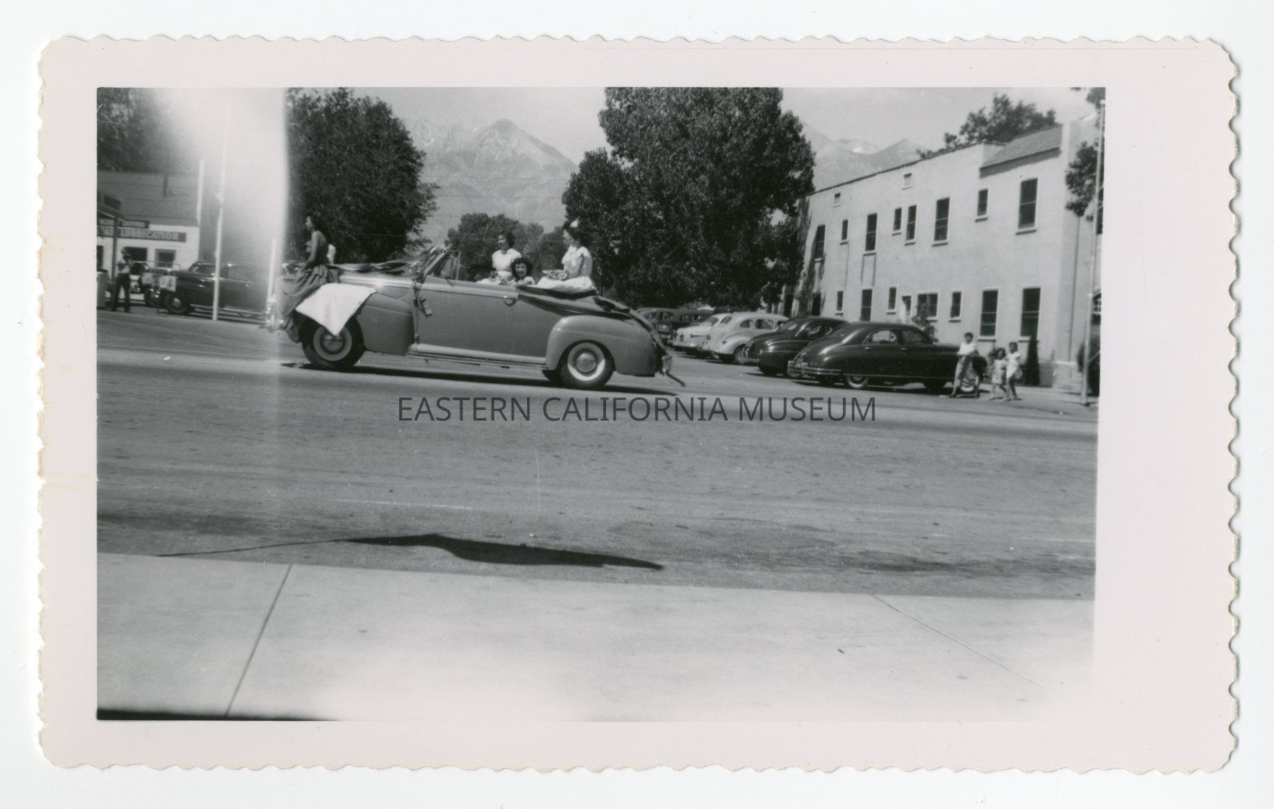 Photo of a car with at least four (or more) women driving in the 4th of July parade in Independence in 1950.