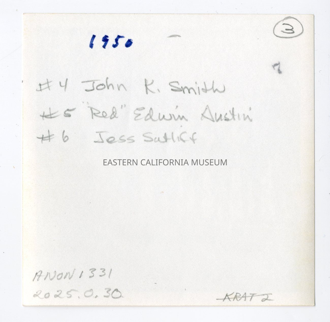 Written in pencil on reverse: #4 John K. Smith, #5 Red Austin, #6 Jess Sutliff.