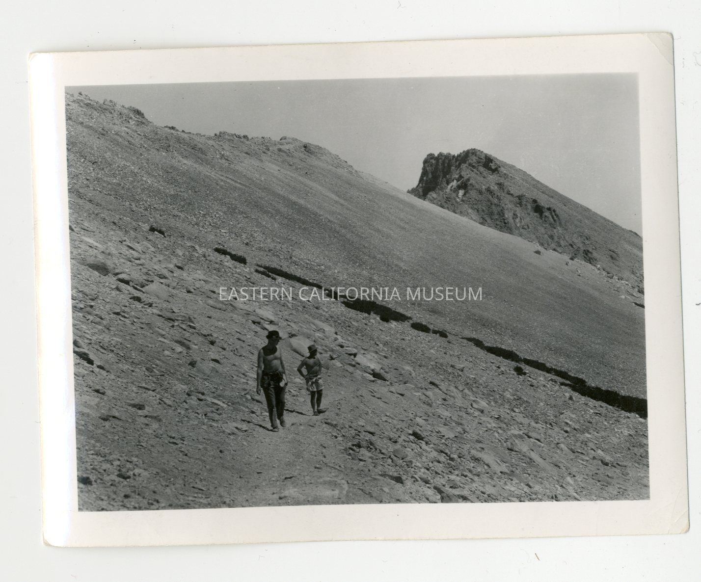 Written in pencil on reverse: Last outpost of "timber." On Kearsarge Pass, 11,800 ft. (Photo taken from summit, looking east, in 1937, Drs. Egeberg and Ray.)Relationships