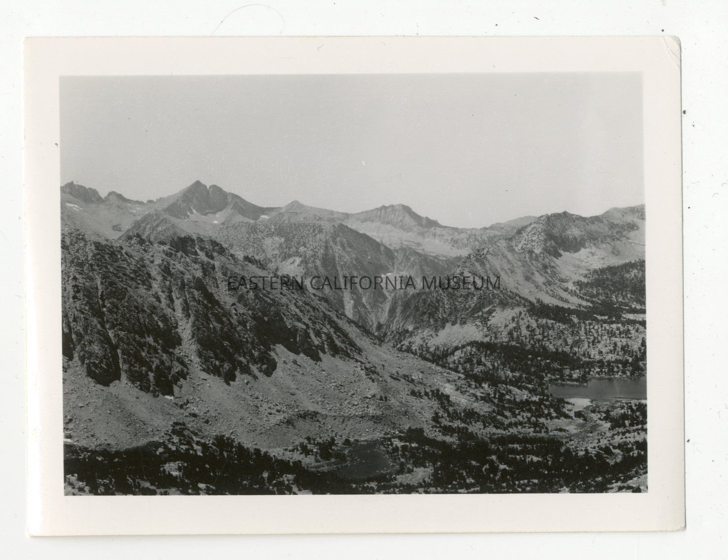 Written in pencil on reverse: West from Kearsarge Pass, to the Great Western Divide. 1937 [drawn Three Corner Round brand] photo. BPBJr.Made/Created