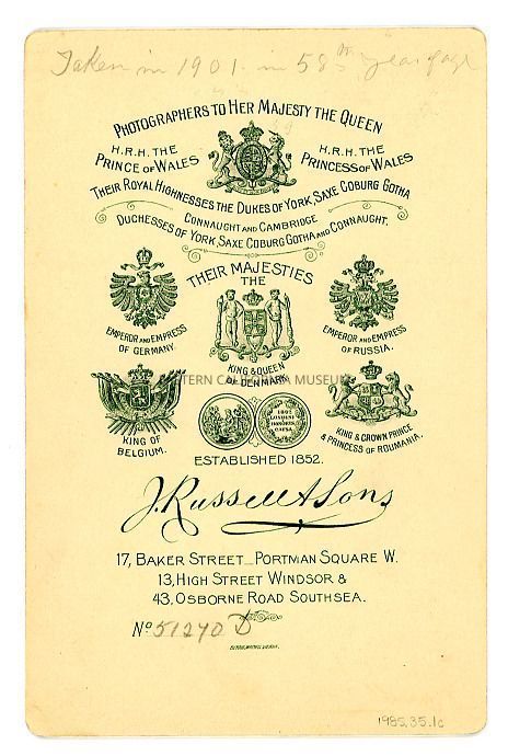 Handwritten in pencil on reverse: Taken in 1901 in 58th year of age.Collection
