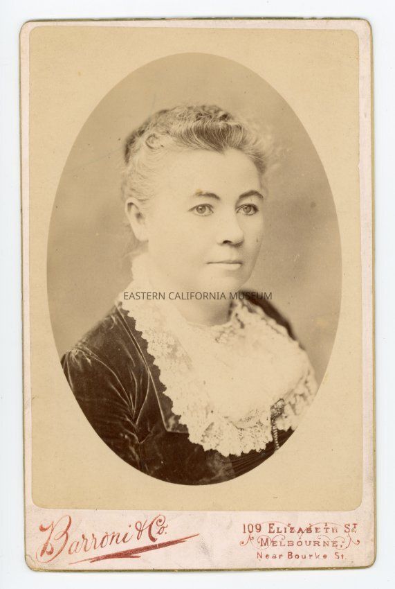 Mounted bust length studio portrait of a woman, likely Edith O'Gorman. Photographer was Barroni & Co. of Melbourne, Australia.