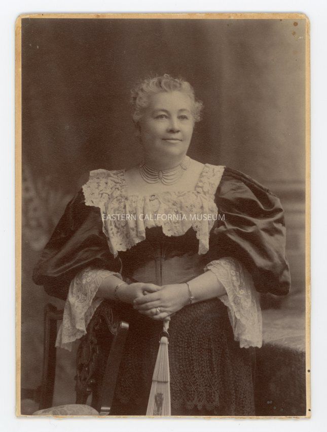 Mounted studio portrait of a standing woman, likely Edith O'Gorman. Photographer was J. Russell and Sons of England. The bottom of the mount has been trimmed off.