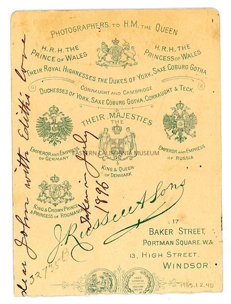 Handwritten in ink on reverse: [Cut off] dear John with Edith's love. Taken in July 1896.