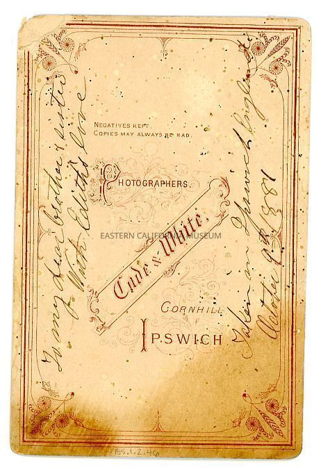 Handwritten in ink on reverse: To my dear brother and sister with Edith's love. Taken in Ipswich, England, October 9, 1881.Collection