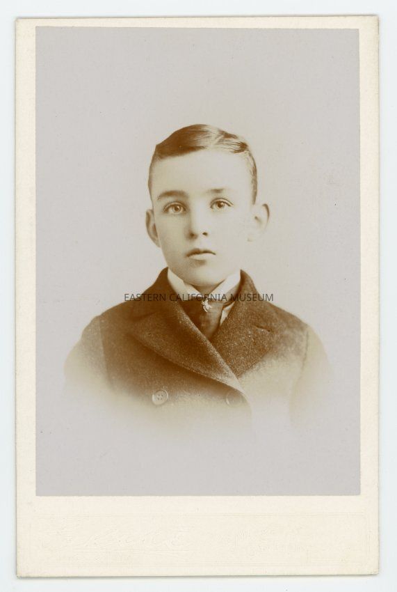 Mounted bust length studio portrait of a young boy wearing a jacket and tie. Photographer was Elite, Jones and Lotz, of San Francisco.