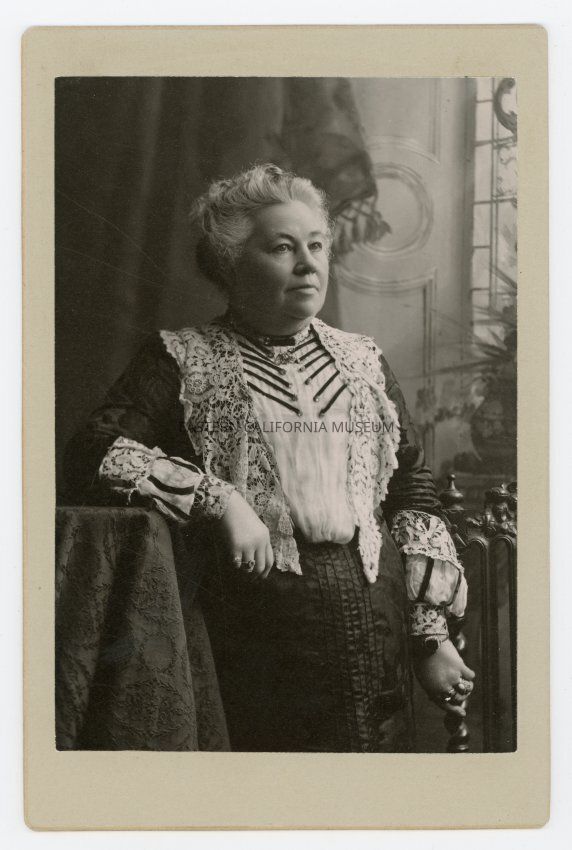 Mounted studio portrait of a woman, likely Edith O'Gorman. Photographer was Taber of San Francisco.
