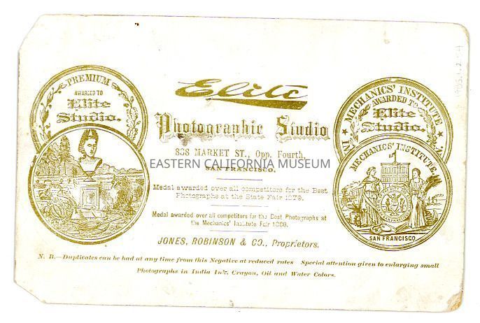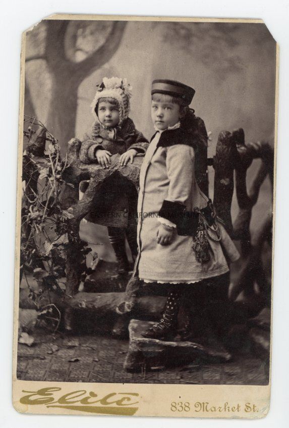 Mounted full length studio portrait of two young children posing in a faux outdoor scene. Photographer was Elite of San Francisco, Jones, Robinson and Co., Proprietors.Collection