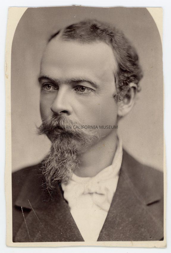 Mounted bust length photograph of a man with a moustache and goatee. The mount and photo have been trimmed down.
