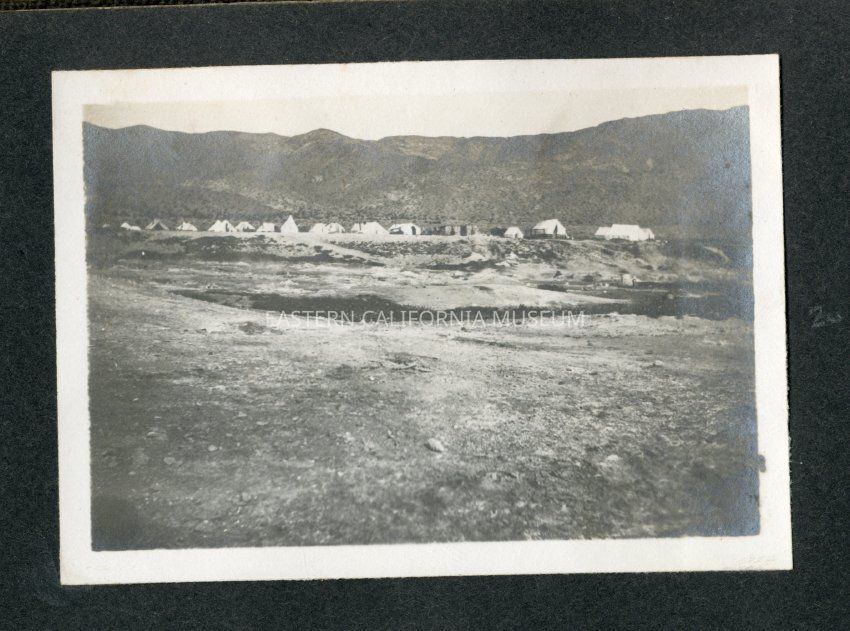 Photo of a Los Angeles Aqueduct work camp, composed of many canvas tent cabins.