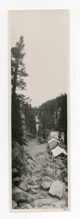 This photo was taken during a trip from the Round Valley area via Mammoth, Devils Postpile, Tioga Pass, and Tuolumne Meadows to Hetch Hetchy Valley. The trip back was via Mono Pass and Bloody Canyon. This location may be Devil's Postpile.Made/Created