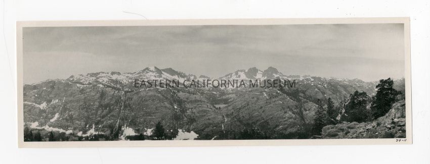 This photo was taken during a trip from the Round Valley area via Mammoth, Devils Postpile, Tioga Pass, and Tuolumne Meadows to Hetch Hetchy Valley. The trip back was via Mono Pass and Bloody Canyon. This location may be Mt. Ritter, Banner Peak.Made/Created