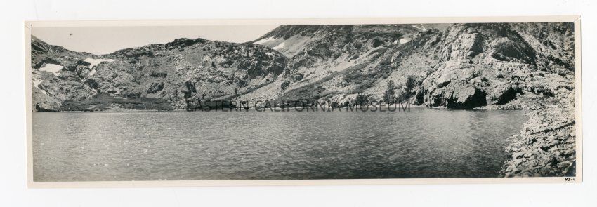 This photo was taken during a trip from the Round Valley area via Mammoth, Devils Postpile, Tioga Pass, and Tuolumne Meadows to Hetch Hetchy Valley. The trip back was via Mono Pass and Bloody Canyon. This location may be Mono Pass, Bloody Canyon, Sardine Lake.Made/Created
