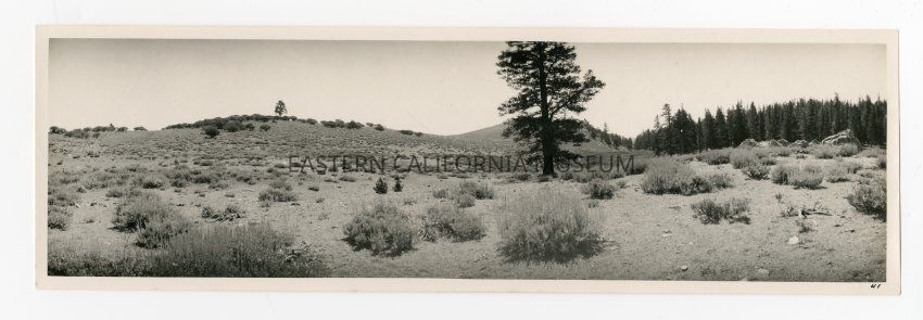 Photo of a desert landscape with lots of sagebrush-like shrubs and a wall of trees over towards the right. There is one lone tree near the center of the photo.