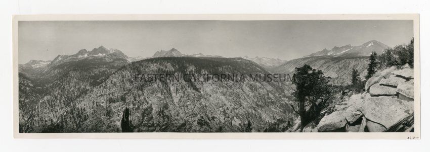 Photo of a mountain landscape. The peaks in the distance are capped with snow. This location may be Kern Canyon.
