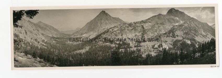 This location may be Vidette Peak (east and west) and upper Vidette Meadow looking south toward Forester Pass.Made/Created