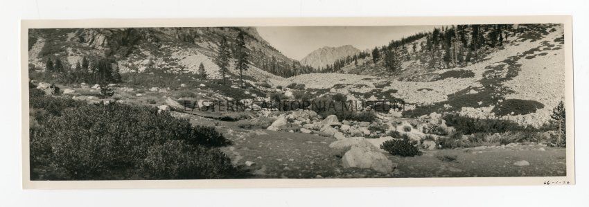 Photo of a landscape with a creek. There are lots of loose rocks/boulders in the background.