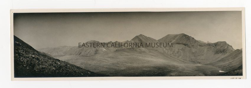 Photo of a barren mountain landscape. This location may be on the trail to Baxter Pass, looking north from the pass.