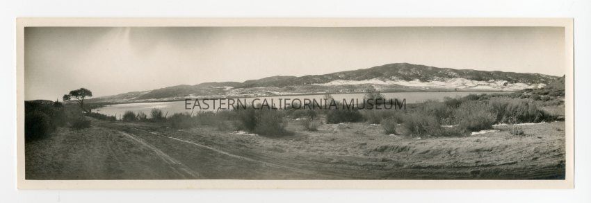 Photo of a lake by a dirt road with patches of snow around. Same location as 1993.45.295.