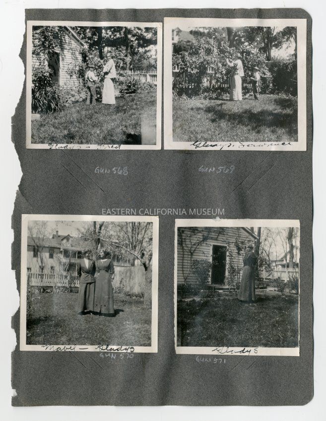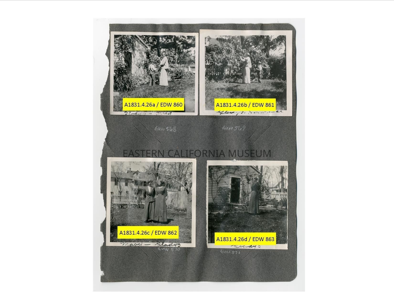 A1831.4.26d: Exterior photo of a woman standing on a grassy lawn. She is identified as Gladys.Collection