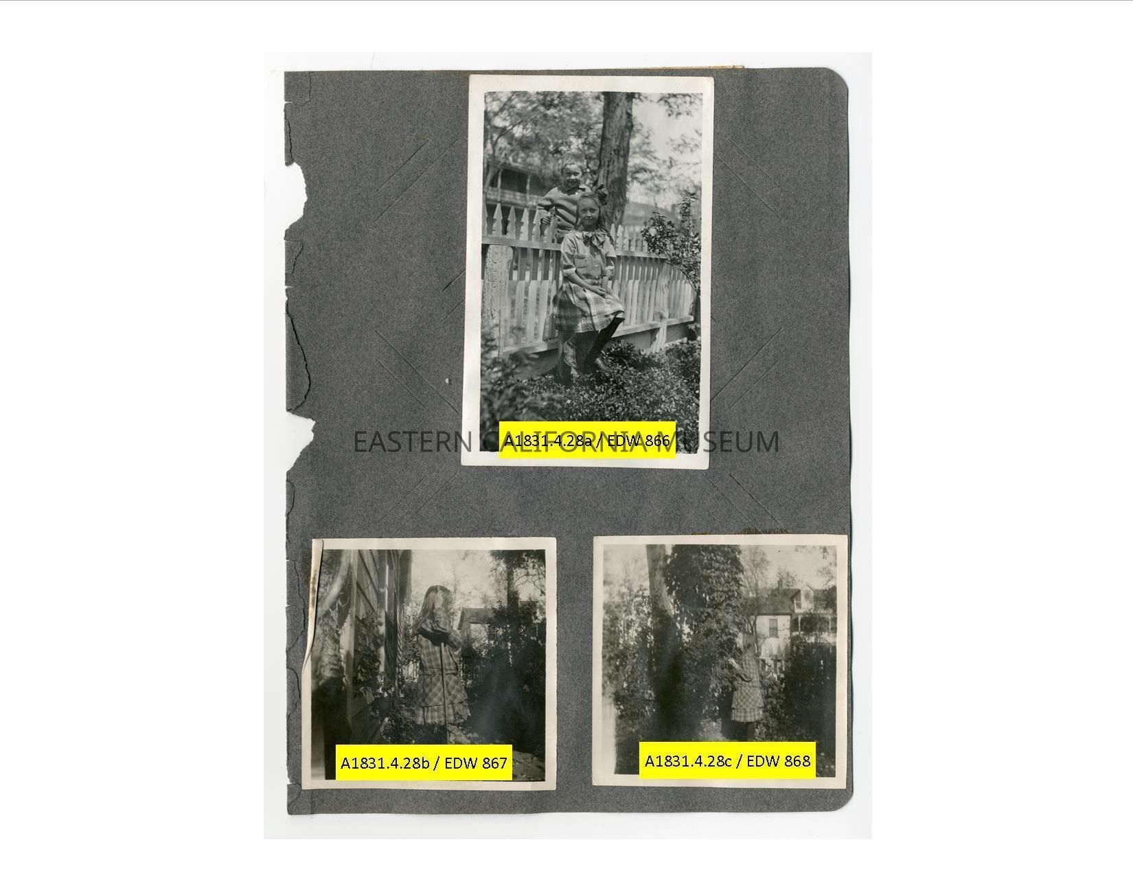 A1831.4.28c: Exterior photo of a young girl in the yard of the Edwards House in Independence. The Norman House (hotel) is visible in the background.Collection