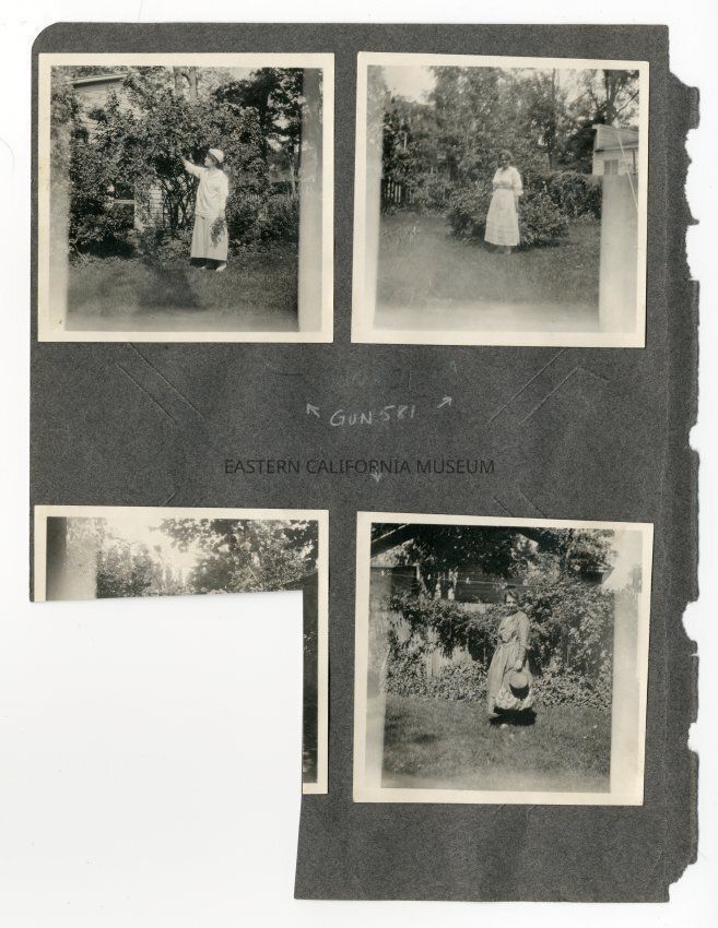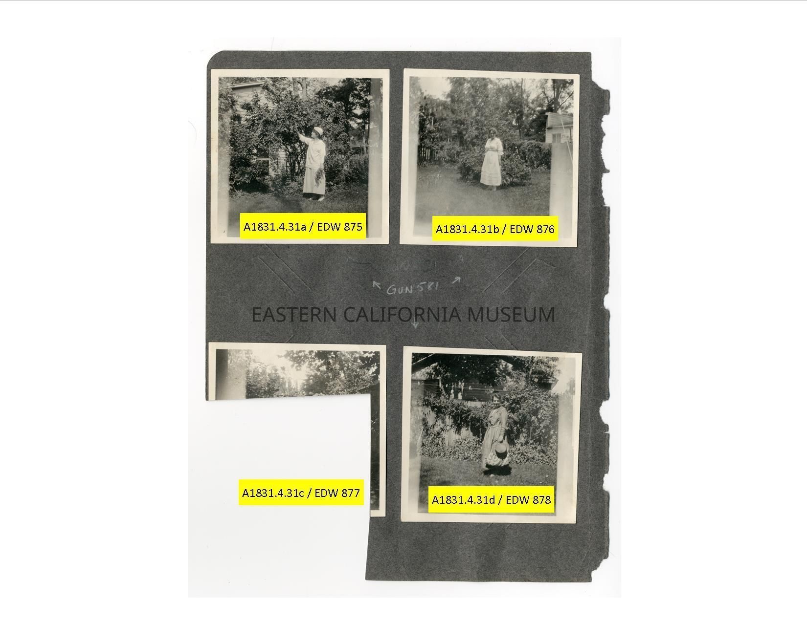 A1831.4.31c: Remains of a photo that has been sacrificed to cut out a photo on the reverse side of the photo album page. It was likely a photo of someone in the yard/garden of the Edwards House in Independence.