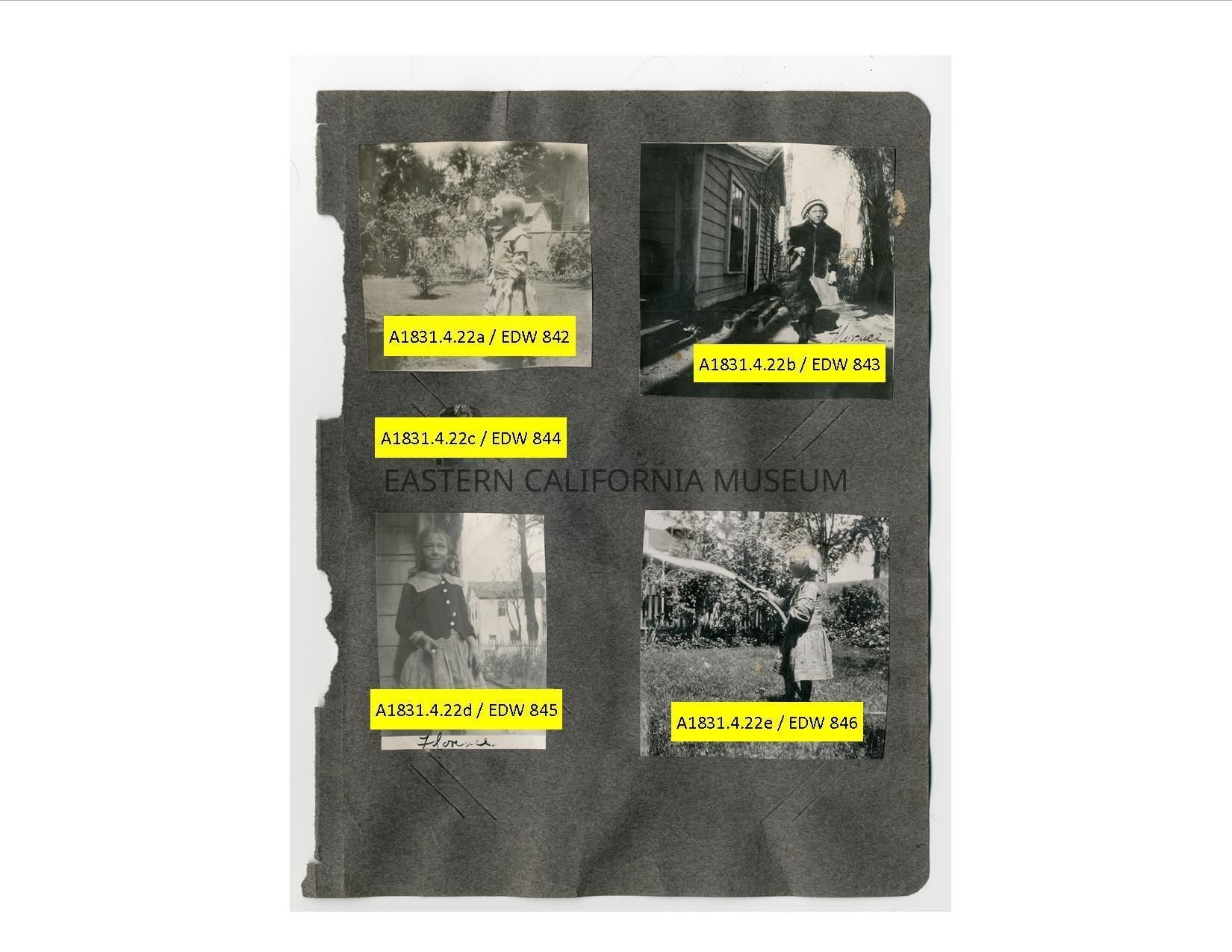 A1831.4.22e: Exterior photo of a little girl holding a hose on a grassy lawn.Collection