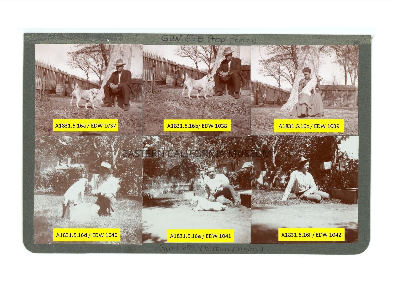 A1831.5.16e: Exterior photo of a man sitting on a grassy lawn next to a dog. Location is likely the Edwards House in Independence as the Norman House (hotel) appears to be in the background.