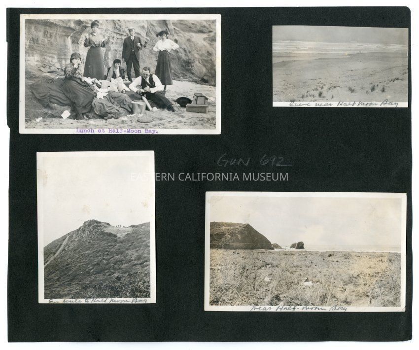 A1831.6.23d: Photo of the seashoreh and ocean. It is labeled, "Near Half-Moon Bay."Collection
