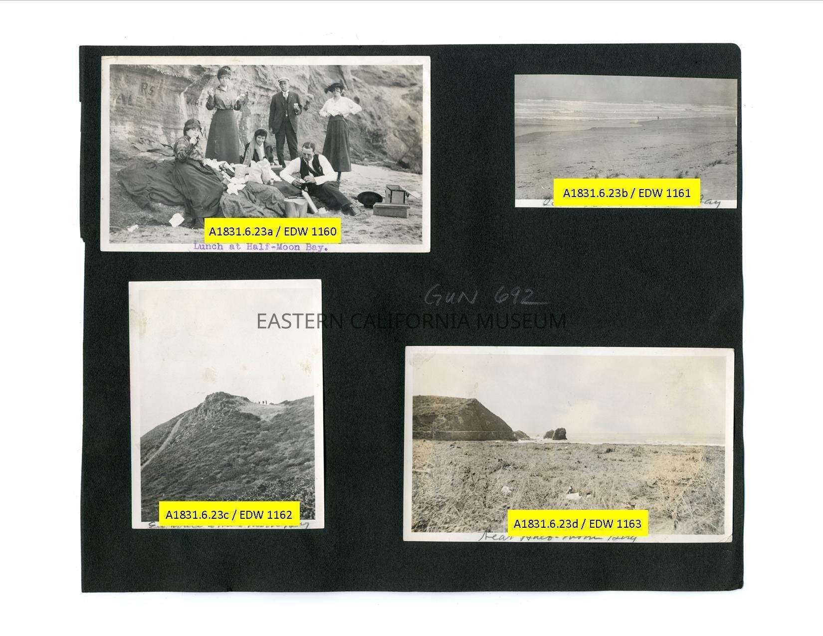 A1831.6.23b: Photo of the beach and ocean. It is labeled, "Scene near Half Moon Bay."