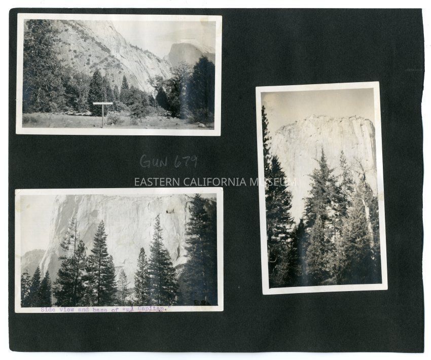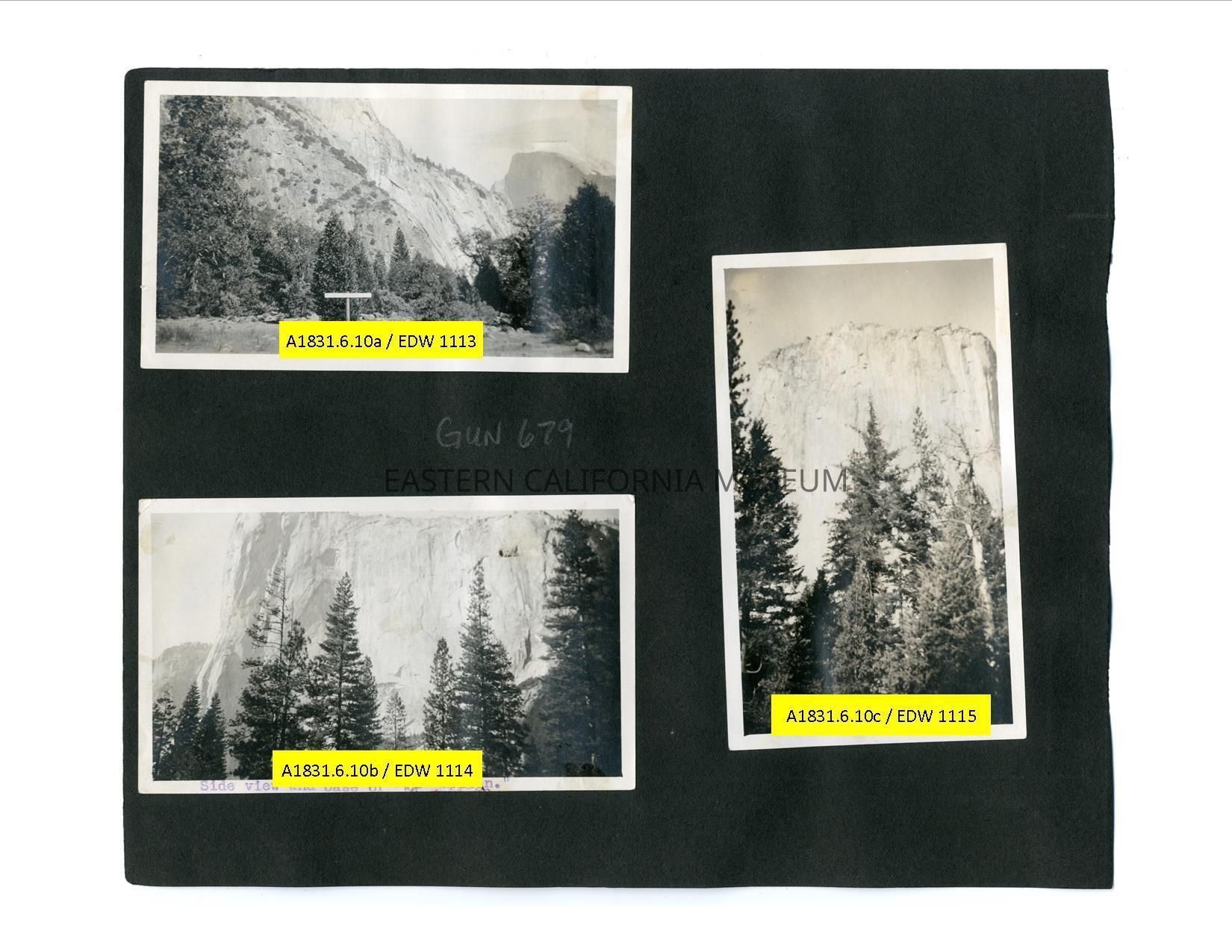 A1831.6.10b: Photo of a nearly vertical cliffside. Typewritten at the bottom is, "Side view and base of El Capitan."