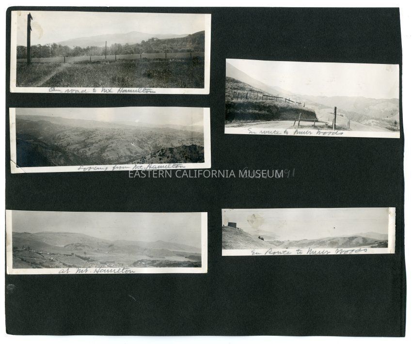 A1831.6.22e: Photo of a hilly landscape. It is labeled, "En route to Muir Woods."Collection