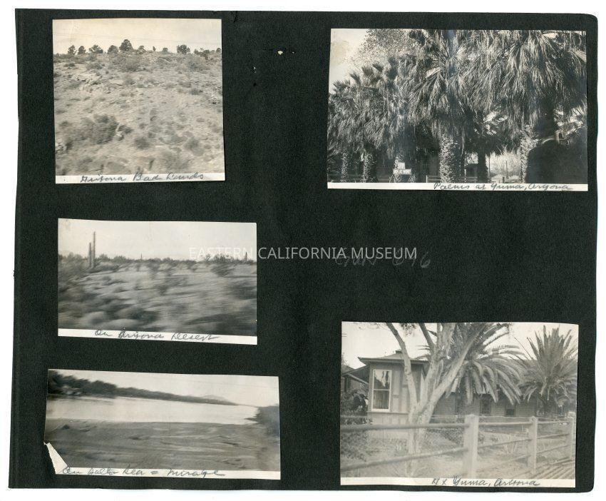 A1831.6.27e: Photo of a house with two palm trees. It is labeled, "At Yuma, Arizona."Collection