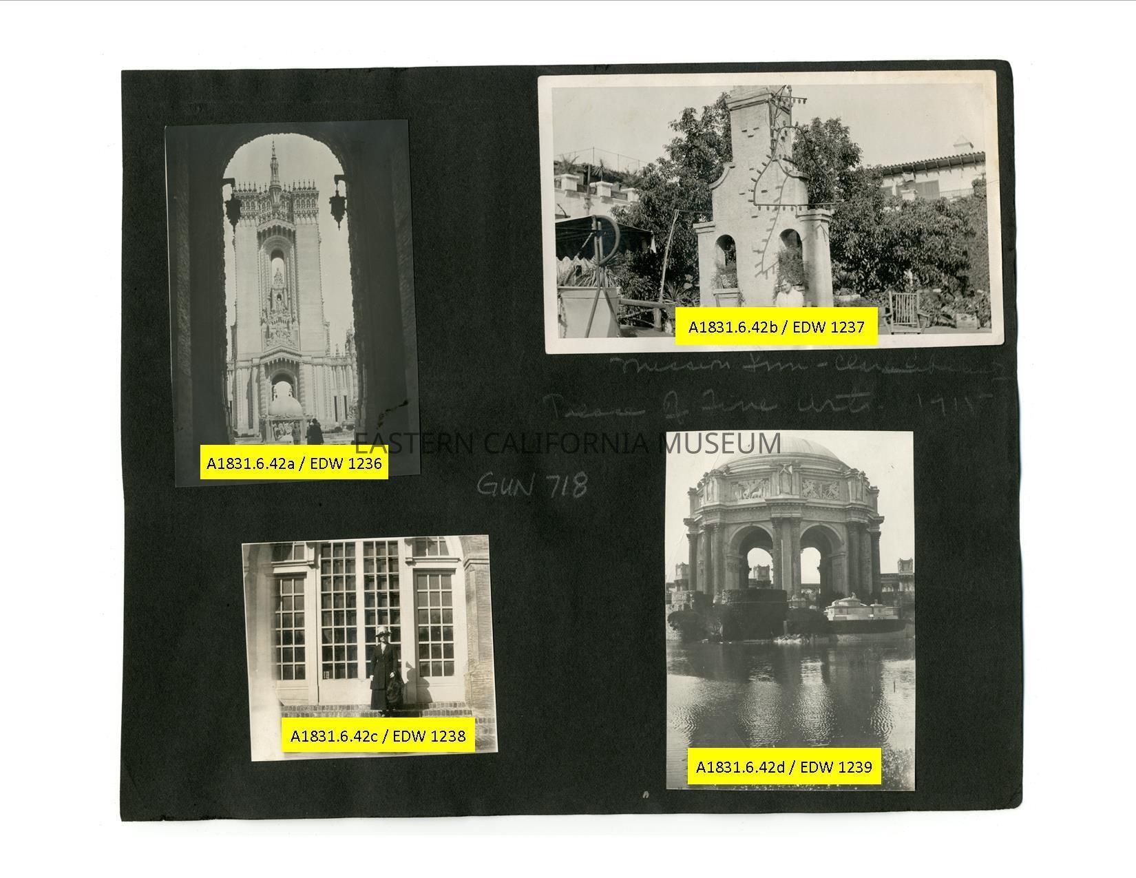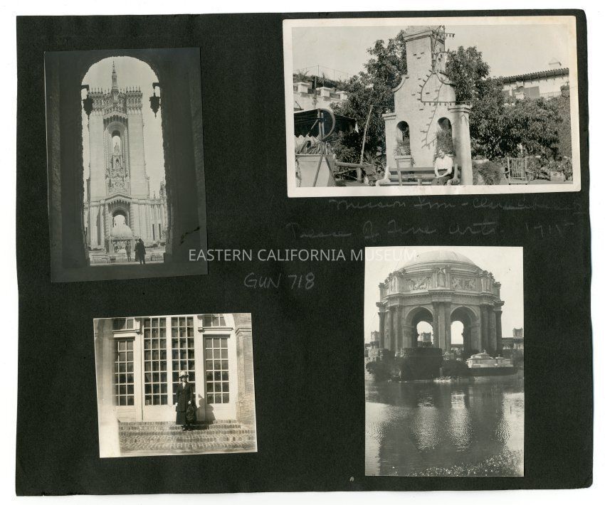 A1831.6.42d: Photo of an ornate domed structure on the edge of a pond or pool. Written above it is, "Palace of Fine Arts, 1915."Collection