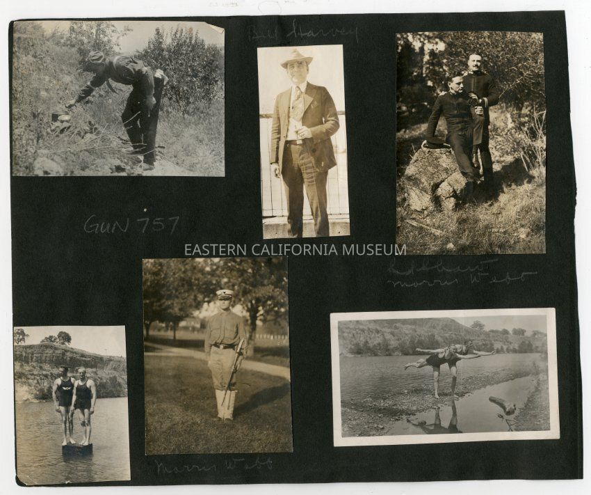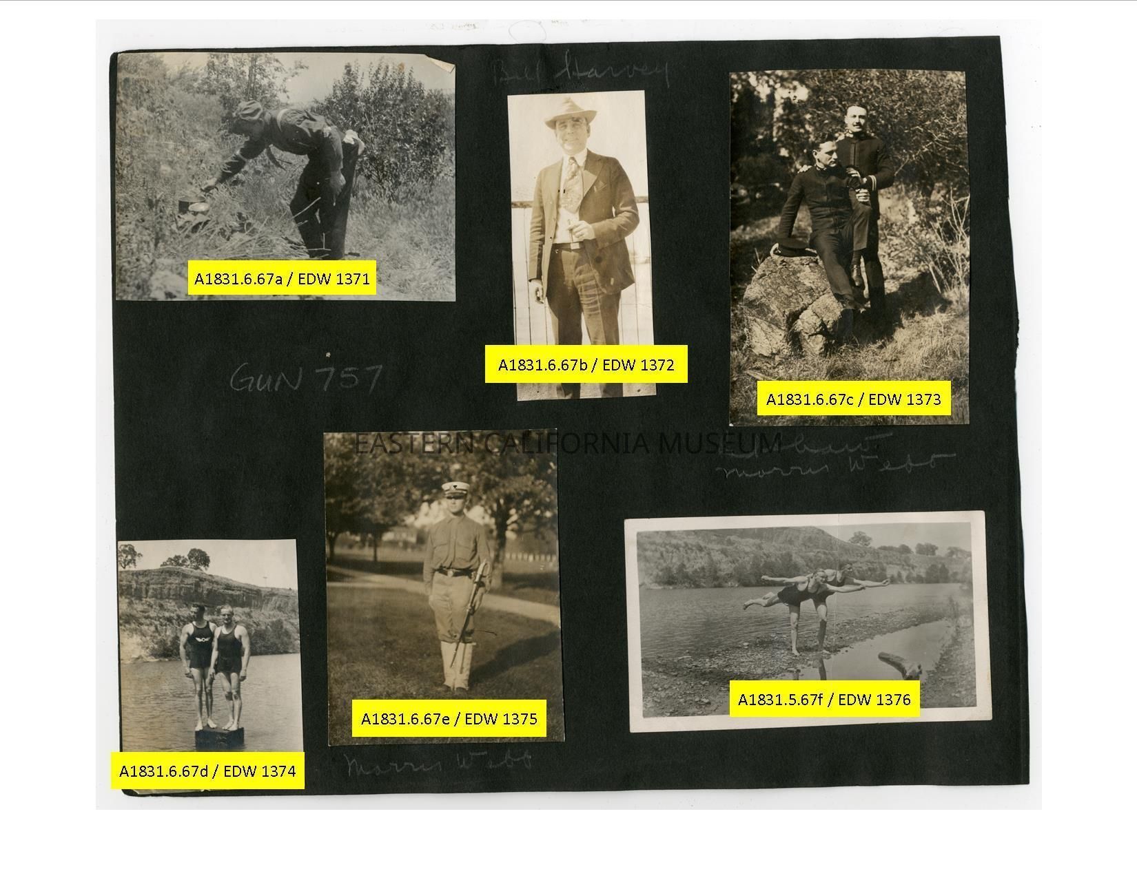 A1831.6.67f: Photo of two men comically posing in swimsuits at a lake or river.Collection