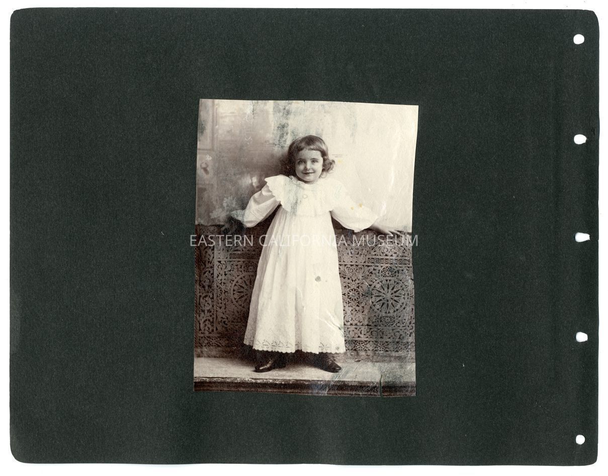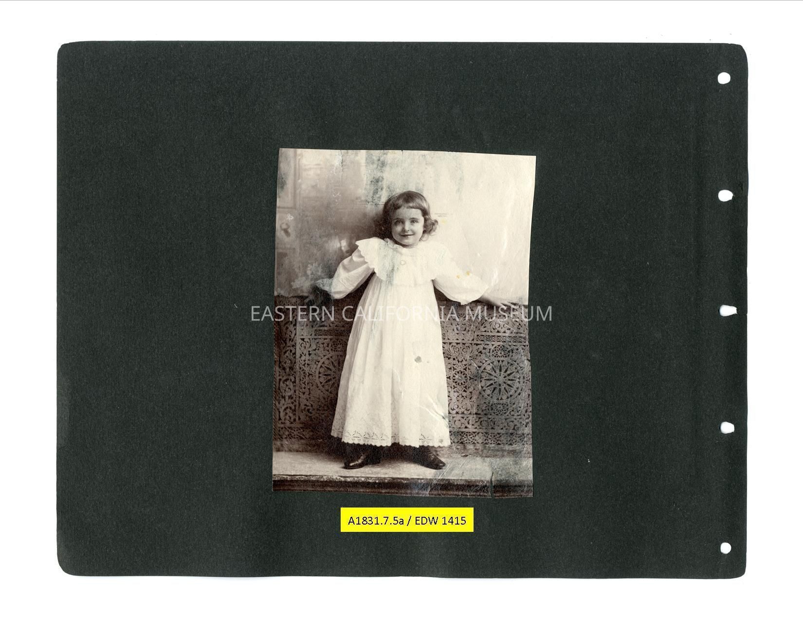 A1831.7.5a: Studio portrait of a young girl standing in a white dress. Probably Helen Gunn.