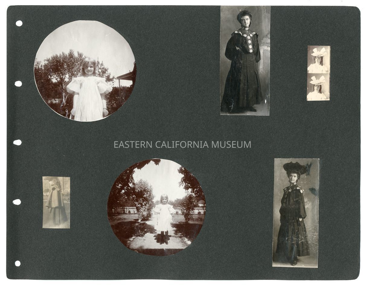 A1831.7.7g: Studio portrait of a young woman wearing a black dress with round, white embellishments on the front. Probably Helen Gunn.Collection