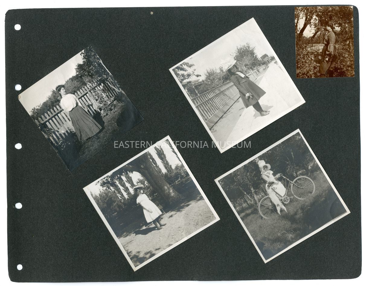 A1831.7.53e: Exterior photo of a young woman (Helen Gunn?) in a garden. There is a white picket fence in the background.Collection