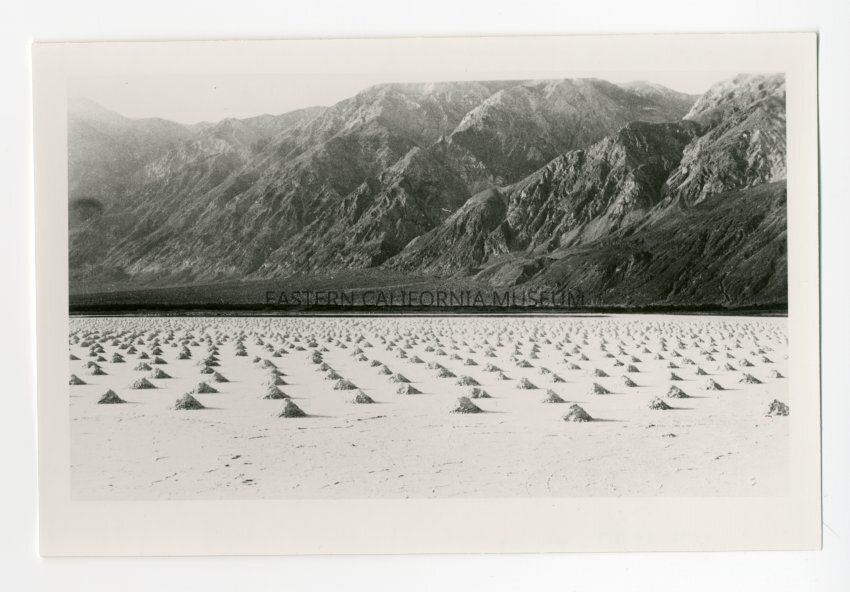 Photo of uniform piles of salt in Saline Valley. Produced by the Saline Valley Salt Co.Collection