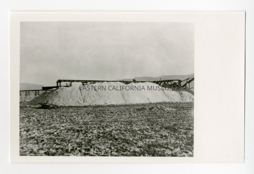 Photo of a large mound of salt that all but hides the structure or machinery behind it.Collection