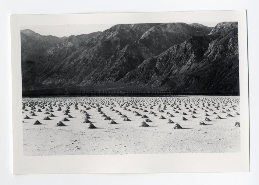 Photo of uniform piles of salt in Saline Valley. Produced by the Saline Valley Salt Co.Collection