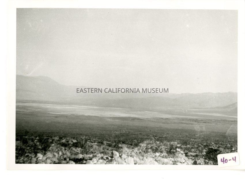 B/w photo of a landscape. Might be the salt flats and brine, or could just be a lake.