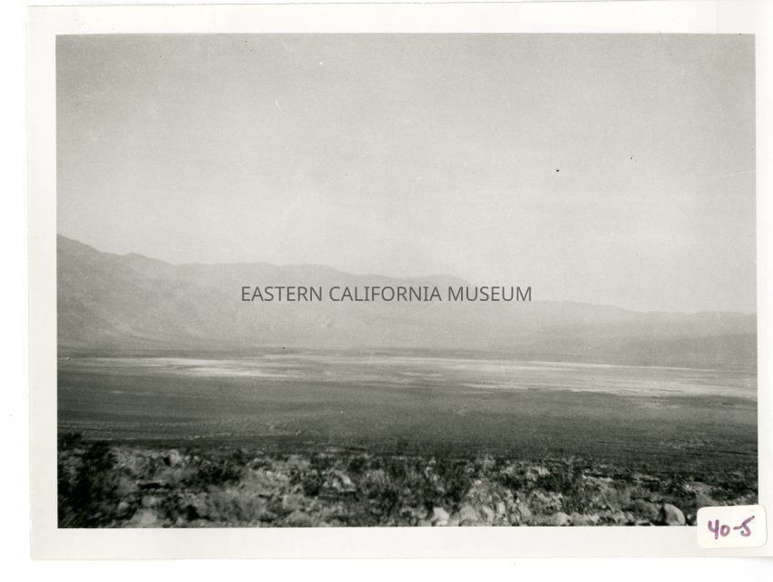 B/w photo of a landscape. Might be the salt flats and brine, or could just be a lake.