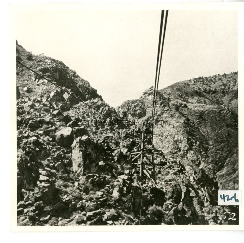 B/w photo of a tram station tower and cables. Written in right corner, "52."