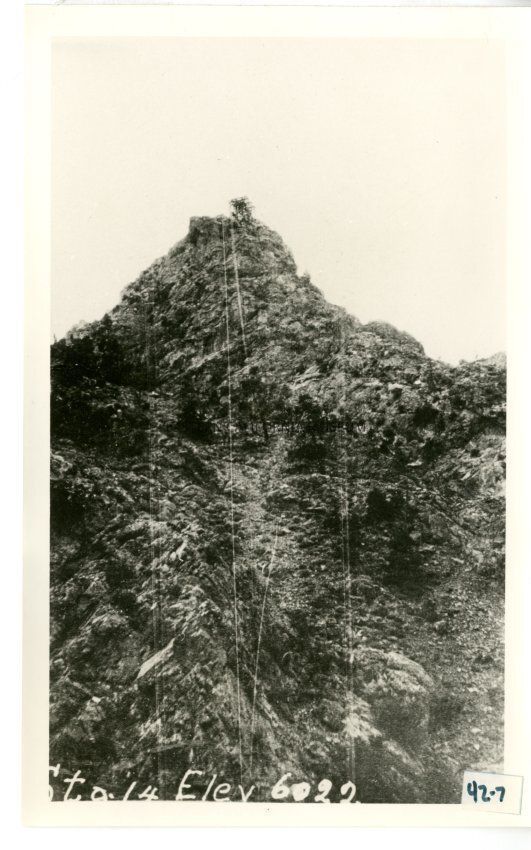 B/w photo of a tram station tower and cables. Written at bottom is, "Sta. 14 Elev 6022."