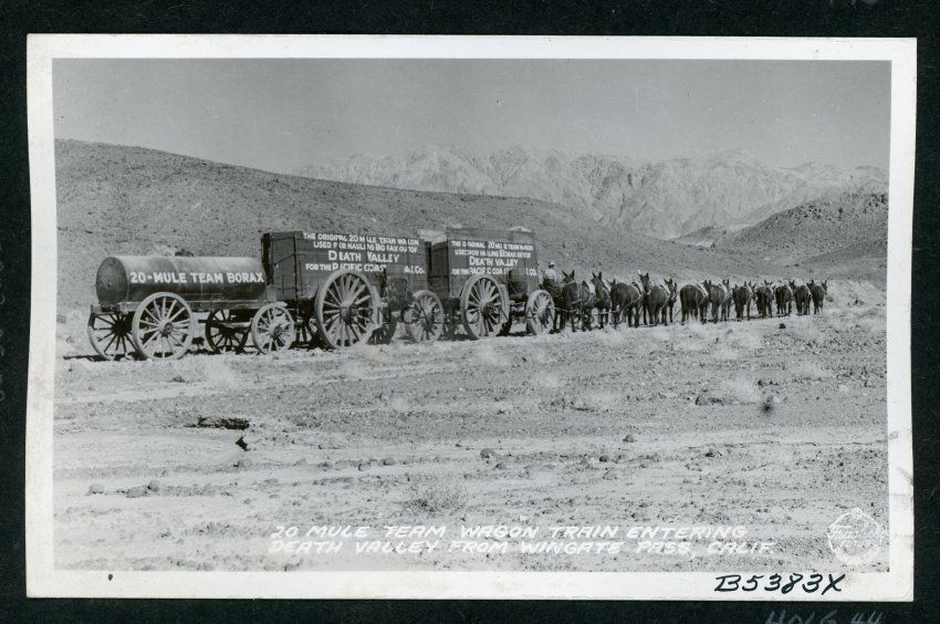 20 Mule Team Wagon Train Entering Death Valley from Wingate Pass, Calif.