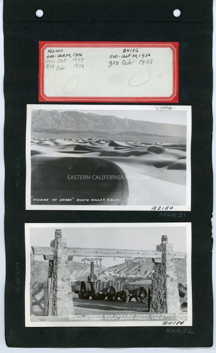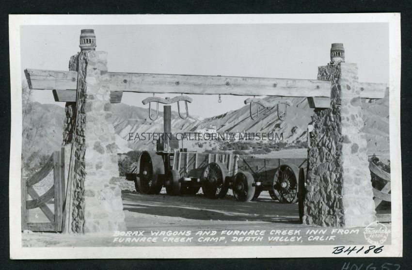 Borax Wagons and Furnace Creek Inn from Furnace Creek Camp Death Valley, Calif.