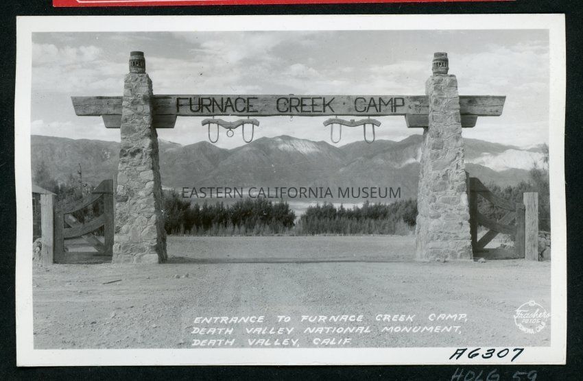 Entrance to Furnace Creek camp Death Valley National Monument Death Valley, Calif.