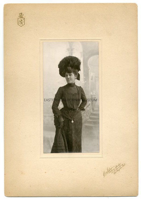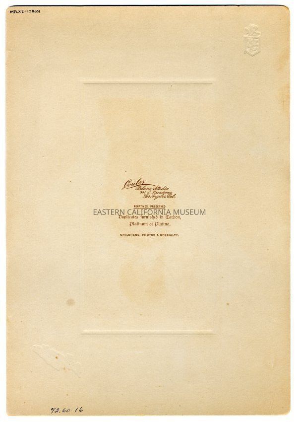 Old interpretative label says: Mathilde Meysan (Mrs. Charles H. Gordon). One of Charles Meysan's daughters, Mathilde taught school in Owens Valley in the 1890s.