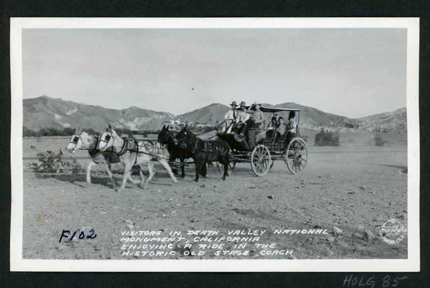 Visitors in Death Valley National Monument, California Enjoying a Ride in the Historic Old Stage Coach F102 Copyright Frashers Fotos Pomona Calif.
